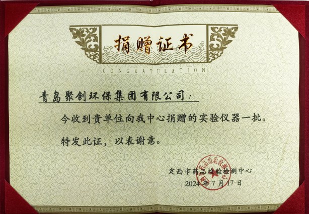 近日,聚創(chuàng)集團(tuán)參與青島市幫扶定西市食藥產(chǎn)業(yè)檢驗(yàn)檢測(cè)能力提升暨青島?定西大型檢驗(yàn)檢測(cè)儀器設(shè)備捐贈(zèng)活動(dòng),并收到定西市藥品檢驗(yàn)檢測(cè)中心表達(dá)感謝的捐贈(zèng)證書(shū)。